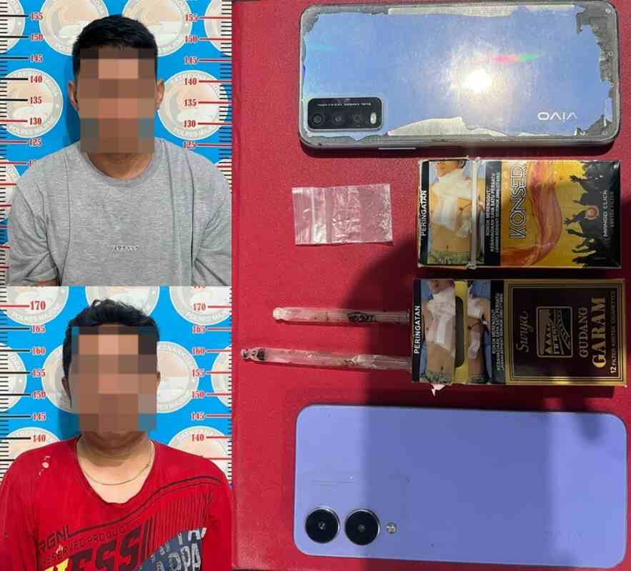 Adapun barang bukti yang berhasil diamankan yakni 1 (satu) sachet kristal bening diduga sabu, 2 (dua) unit handphone merk Vivo warna ungu, 1 (satu) unit mobil Avanza warna merah, 2 (dua) buah pirex, 1 (satu) bungkus rokok merk Surya, 1 (satu) bungkus rokok merk Konser,