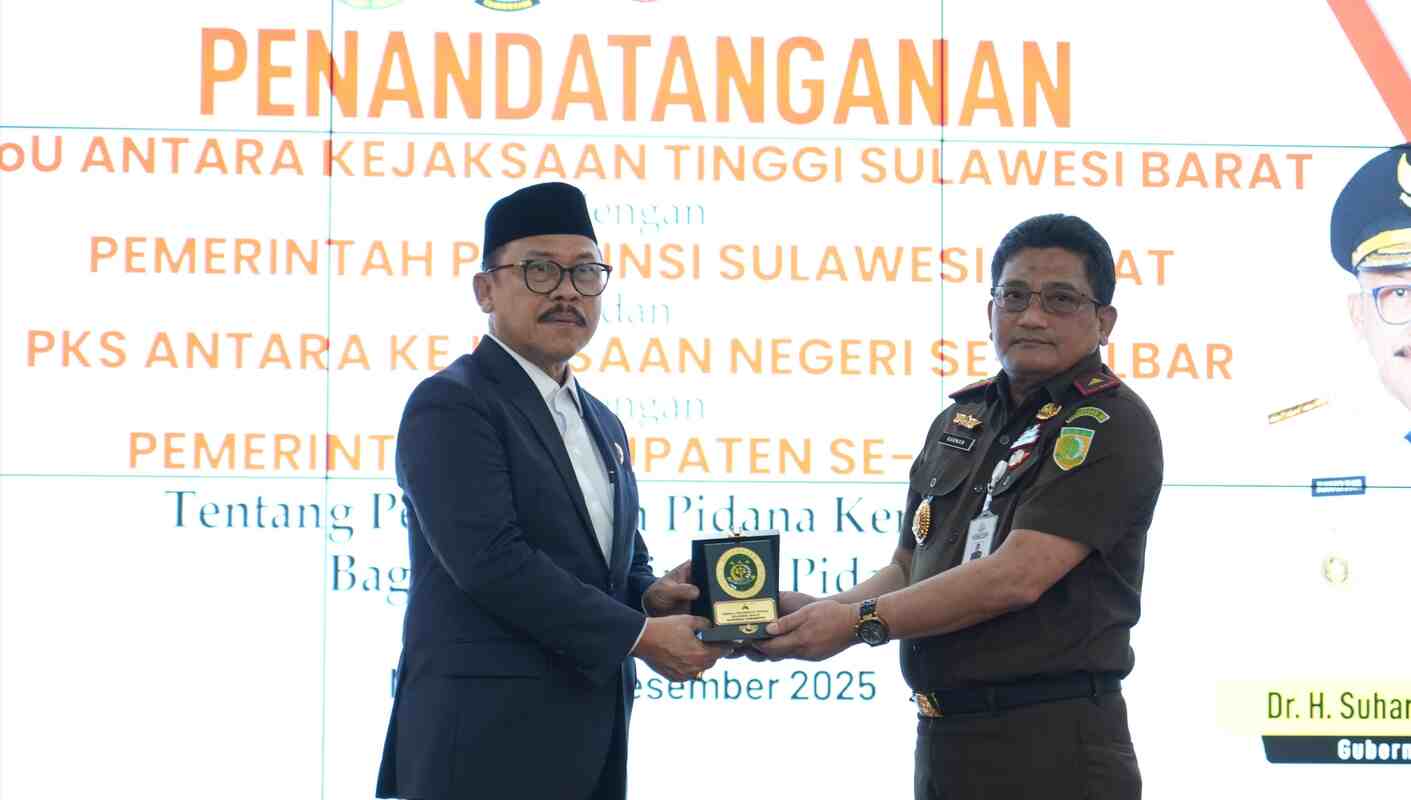 SWARAMANDAR.COM, MAMUJU — Sebagai langkah strategis menyongsong berlakunya KUHP Nasional pada 2026, Kejaksaan Tinggi Sulawesi Barat bersama Pemerintah Provinsi Sulawesi Barat menandatangani Memorandum of Understanding (MoU) terkait pelaksanaan pidana kerja sosial, Senin (8/12/2025). Penandatanganan yang berlangsung di Aula Prof. Dr. ST. Burhanuddin, S.H., M.H itu dihadiri sekitar 150 peserta dari unsur penegak hukum, pemerintah daerah, akademisi hingga tokoh adat.