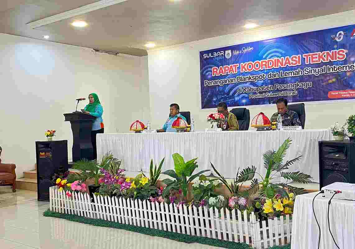 SWARAMANDAR.COM, PASANGKAYU — Pemprov Sulbar melalui Dinas Komunikasi, Informatika, Statistik dan Persandian (Kominfo SP) menggelar Rapat Koordinasi Teknis (Rakortek) Penanganan Blankspot dan Lemah Sinyal Internet di Kabupaten Pasangkayu, Sulbar, Kamis 3 Juli 2025, bertempat di Hotel Trisakti Pasangkayu.