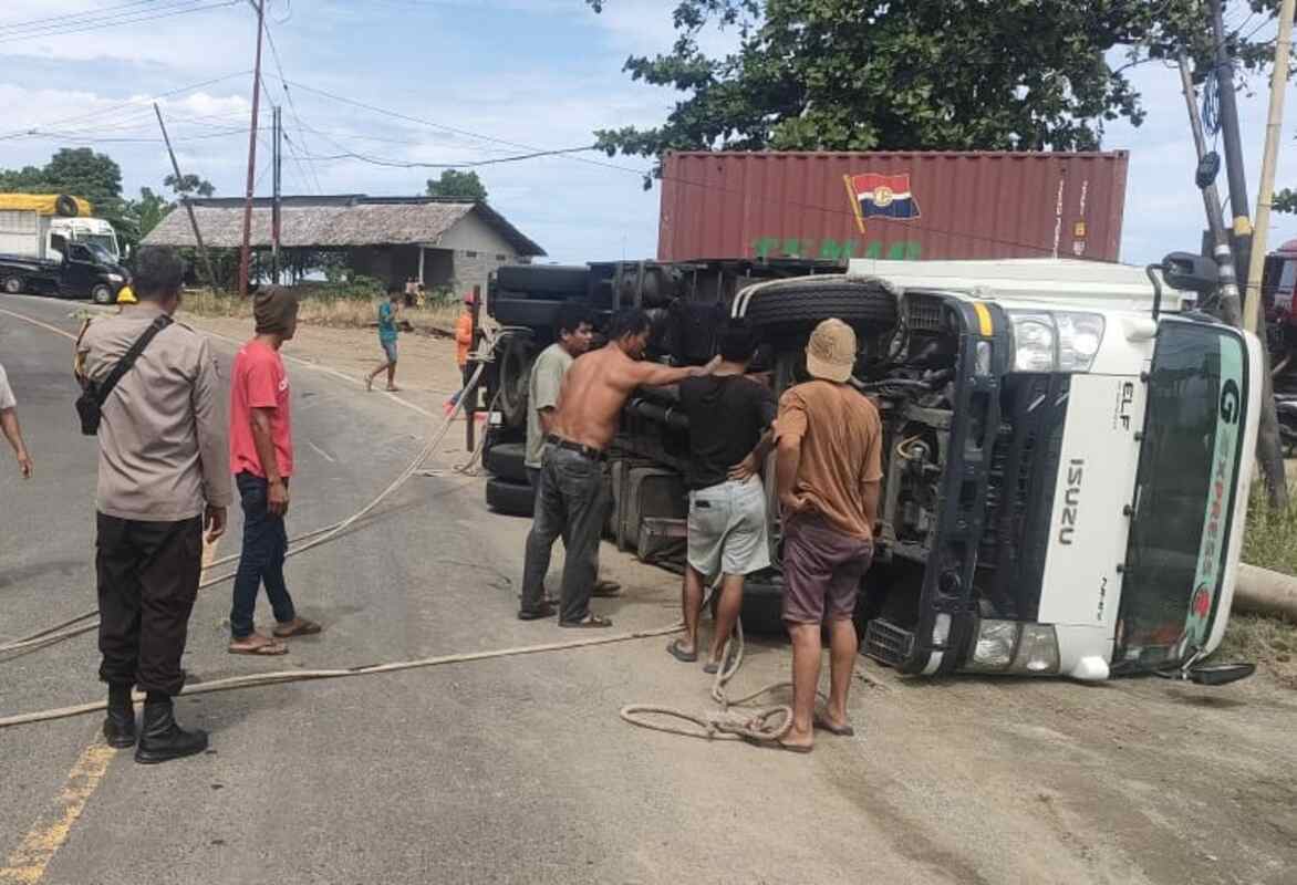 “Mobil terjatuh ke samping bahu jalan dan terseret beberapa meter sebelum akhirnya menabrak tiang listrik,” ungkap AIPDA Amrullah.