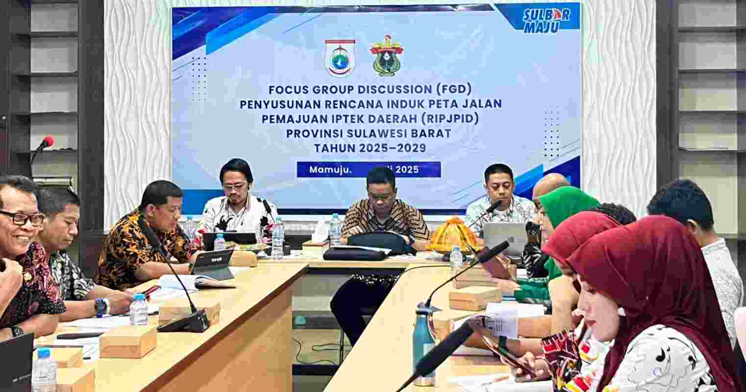 SWARAMANDAR.COM, MAMUJU — Pemprov Sulbar melalui Bapperida menggelar Focus Group Discussion (FGD) guna menyempurnakan dokumen Rencana Induk dan Peta Jalan Pemajuan Ilmu Pengetahuan dan Teknologi Daerah (RIPJPID) Tahun 2025–2029, di Ruang RPJMD Kantor Bapperida Sulbar, Kamis, 11 Juli 2025.