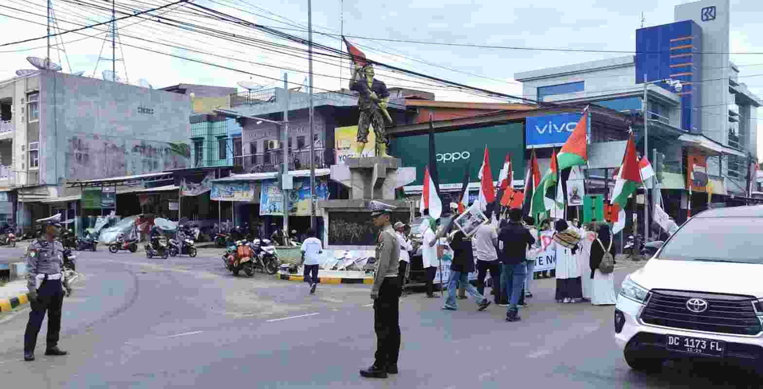 Sejak pagi, puluhan peserta aksi sudah memadati bundaran Tugu Juang dengan membawa berbagai atribut aksi seperti poster dan spanduk bertuliskan dukungan untuk rakyat Palestina. Mereka menyuarakan pesan kemanusiaan dan solidaritas dengan damai.