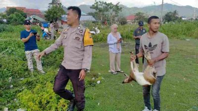 Dalam rangka menjaga ketertiban umum dan kebersihan lingkungan, Bhabinkamtibmas Kelurahan Lantora Polsek Polewali, Bripka Hendra Martes, bersama Satpol PP dan Pemerintah Kelurahan Lantora, melaksanakan giat penertiban hewan ternak kambing liar di wilayah Kelurahan Lantora, Kecamatan Polewali, Kabupaten Polewali Mandar, Jumat (24/10/2025) pukul 15.10 s.d. 17.20 Wita.