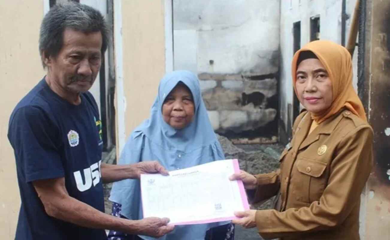 Kepala Disdukcapil Majene, A. Devianti Arna, S.H., bersama dengan jajarannya mendatangi lokasi kebakaran untuk menyerahkan KK baru atas nama pasangan suami istri Bapak Rubama dan Ibu Muliati, yang rumah serta seluruh barang berharganya terbakar habis.