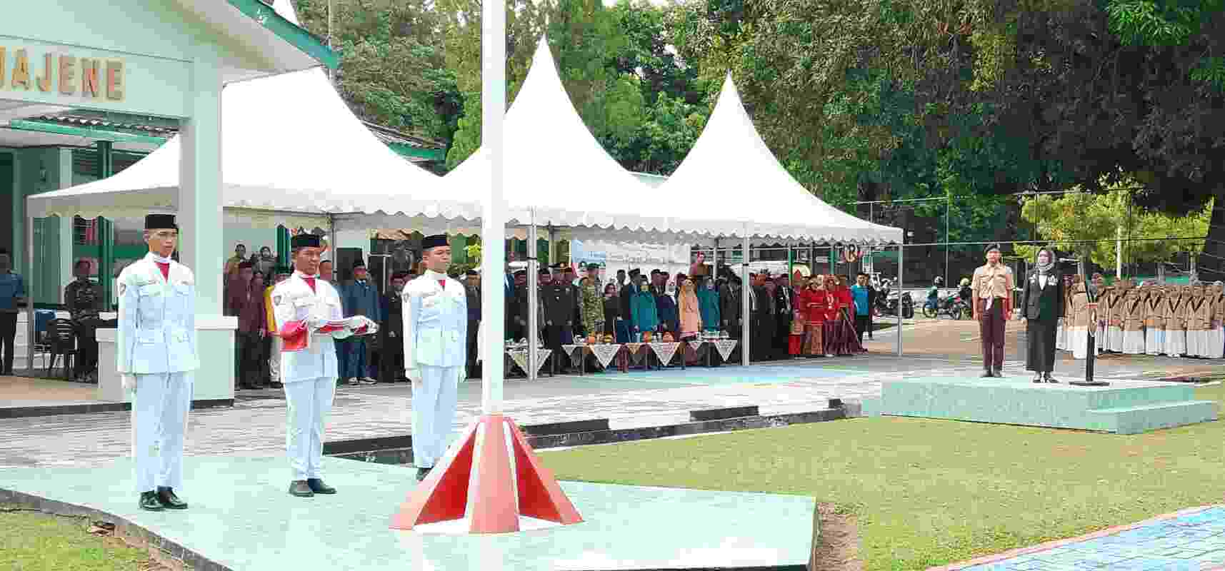 Rangkaian upacara berlangsung khidmat. Pengibaran Bendera Merah Putih dilakukan oleh tim Paskibraka SMAN 2 Majene, diiringi lagu kebangsaan “Indonesia Raya” yang dibawakan secara harmonis oleh Paduan Suara Pondok Pesantren Darul Ulum Al-Assaniah di bawah asuhan KH. Muhammad Shaleh.