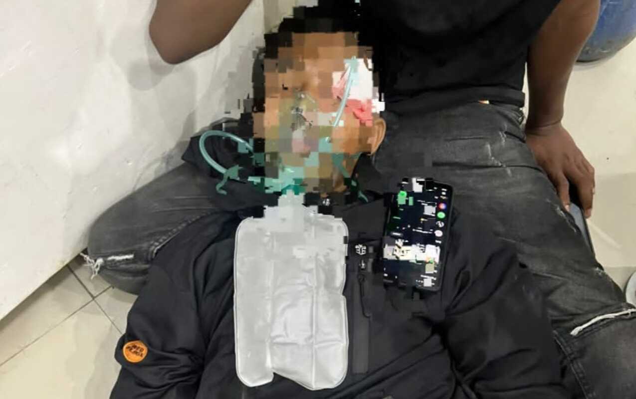 Tanpa diduga, enam sepeda motor yang dikendarai sekelompok orang tak dikenal melintas di lokasi. Dari arah rombongan tersebut, salah seorang pelaku melemparkan batu ke arah korban, yang kemudian mengenai pelipis kiri dan menyebabkan luka robek cukup serius.